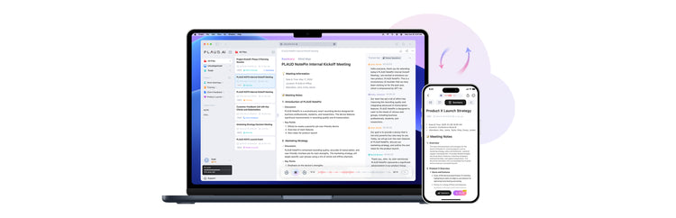 Registra sui dispositivi PLAUD e accedi su app web e desktop, con archiviazione illimitata su un cloud sicuro.