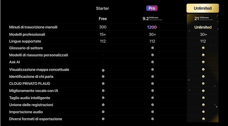 PLAUD NOTE e Pro Piano IA annuale