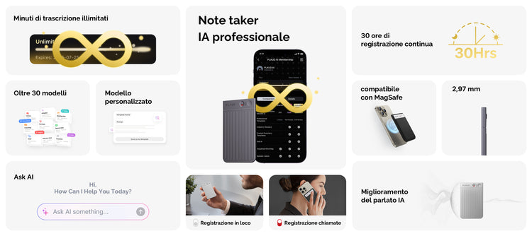 Cattura ogni dettaglio senza sforzo con PLAUD NOTE che integra modalità di registrazione telefonica/in loco.
